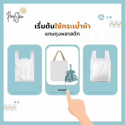 1.เริ่มต้นใช้กระเป๋าผ้าหรือถุงผ้าแทนถุงพลาสติก