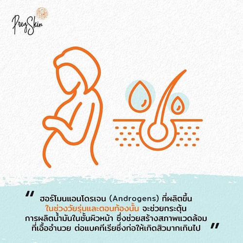 1. การเป็นสิวตอนท้องนั้นมีสาเหตุที่คล้ายกับวัยรุ่นเป็นสิว นั้นก็คือ ฮอร์โมน โดยเฉพาะฮอร์โมน แอนโดรเจน (Androgens)