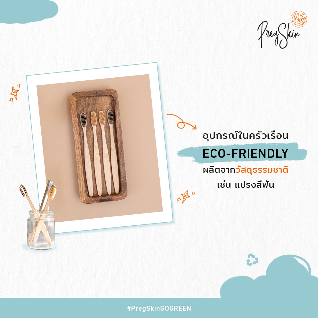 โดยปกติอุปกรณ์ในครัวเรือนที่เราใช้กันอยู่เป็นประจำ เช่น แปรงสีฟัน และแปรงทำความสะอาดต่างๆ มักจะทำจากพลาสติก แต่อุปกรณ์ในครัวเรือนที่ทำจากวัสดุ Eco-friendly จะผลิตจากวัสดุธรรมชาติทั้งหมด นอกจากจะทำให้บ้านดูสวย ชิค มีสไตล์แล้ว เวลาหมดอายุการใช้งาน ยังสามารถย่อยสลายได้เองตามธรรมชาติ ไม่สร้างขยะเพิ่มอีกด้วย แนะนำ: ถ้าใช้วัสดุที่เป็นไม้ หรือวัสดุที่ดูดความชื้นได้ดี อย่าลืมตากให้แห้งทุกครั้งหลังจากใช้งานเสร็จ เพื่อป้องกันการเกิดเชื้อราตามมาด้วยนะคะ