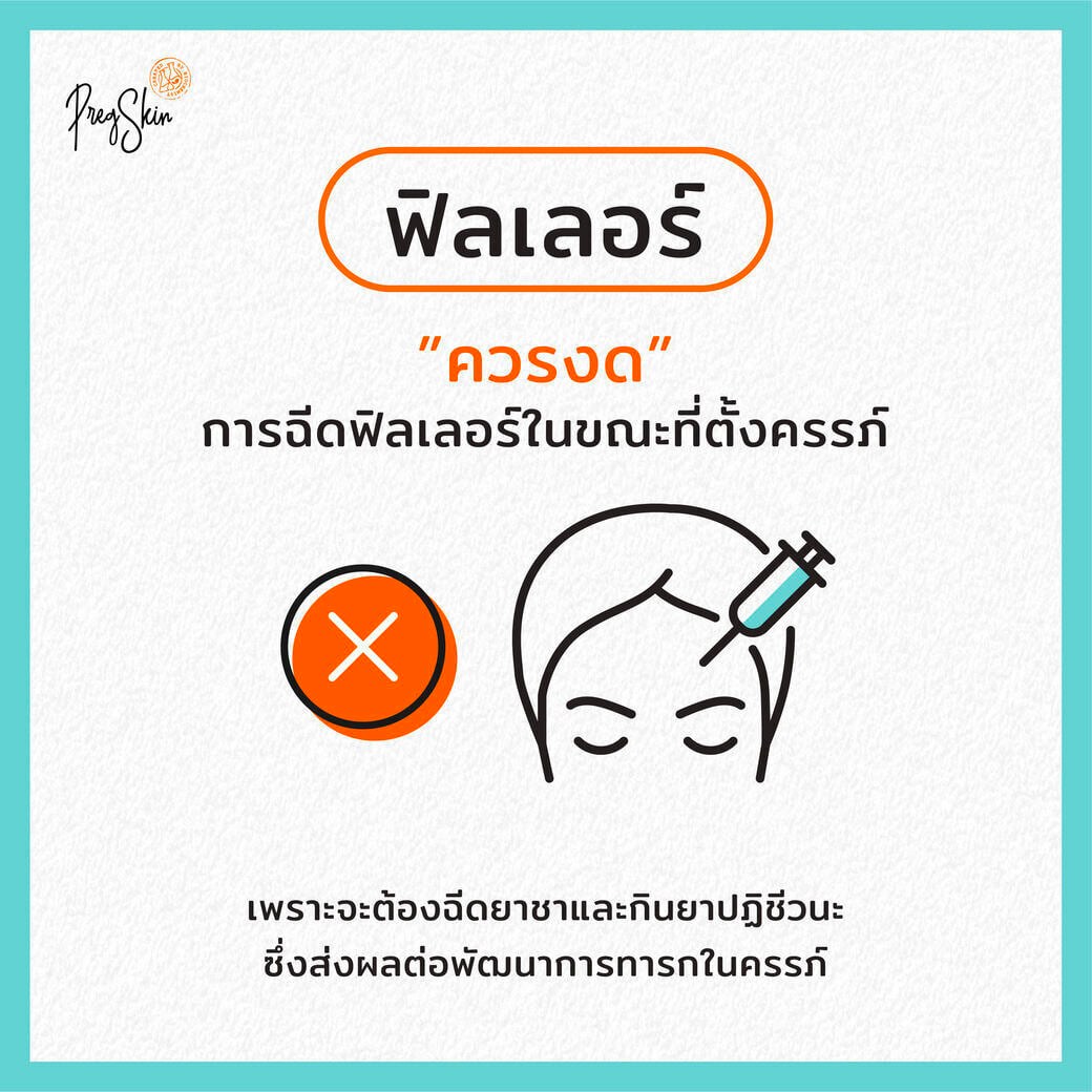 ฟิลเลอร์ คือ การเติมเต็ม Hyaluronic Acid หรือ HA ช่วยเติมเต็มหรือเสริมชั้นในผิวหนังและใต้ผิวหนัง ที่ช่วยลดและแก้ไขปัญหาผิว ริ้วรอยร่องลึก บริเวณต่างๆ ของใบหน้าให้กลับมาดูอ่อนเยาว์ กระชับ เปล่งปลั่ง แต่ก็ควรงด การฉีดฟิลเลอร์ นะคะ คุณแม่ต้องฉีดยาชาและใช้ยาปฏิชีวนะ เช่นเดียวกันกับการร้อยไหมนะคะซึ่งเสี่ยงส่งผลต่อพัฒนาการของลูกในครรภ์ได้